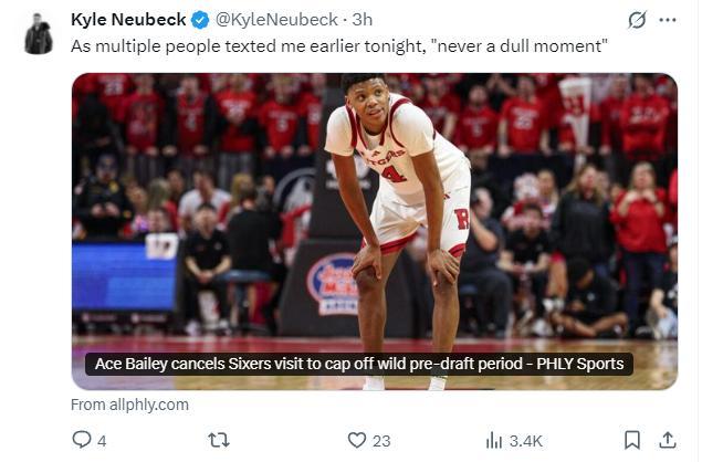 費城記者傑森-杜馬斯寫道:貝利的團隊希望在進行試訓前得到費城的選中承諾,而且需要給他先發席位、充足的登場時間、培養計劃等,如此一來雙方合作的可能性就明顯降低了。