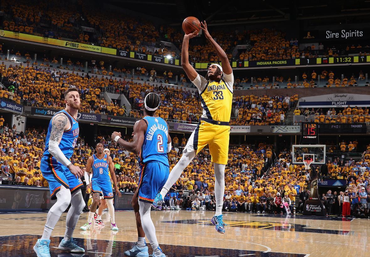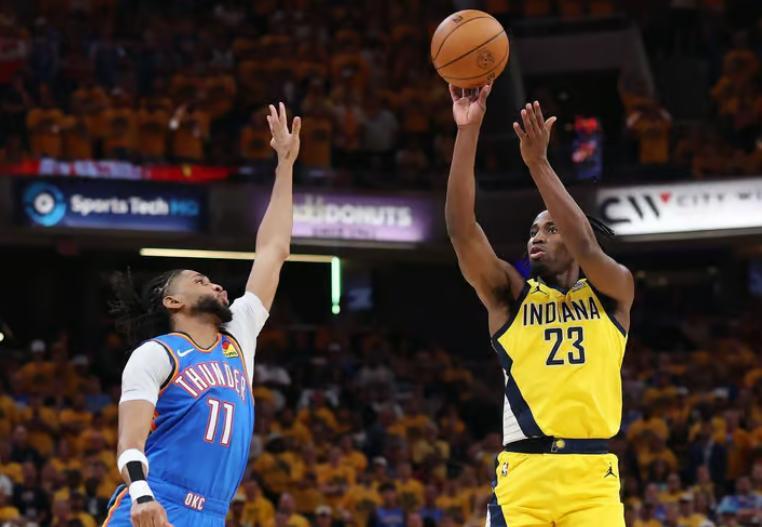 這場比賽哈利伯頓帶傷出戰,他的小腿拉傷還未痊癒;特納這邊也是帶着疾病登場,步行者五個先發有2人不是100%狀態,哈利伯頓首節5中1,特納首節3中0,可見這兩人還是被身體問題侵擾,好在西卡、內姆布哈德、託平三人進攻效率極佳,步行者在主場球迷的吶喊中領先雷霆3分。