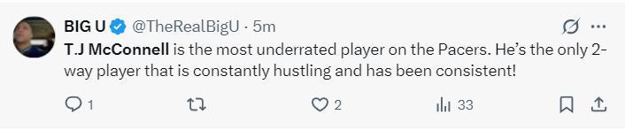 印城媒體:麥康纔是步行者最被低估的球員,他是唯一一位能攻善守、且一直努力拼搏、表現最穩定的球員。