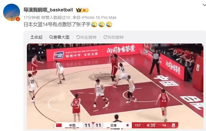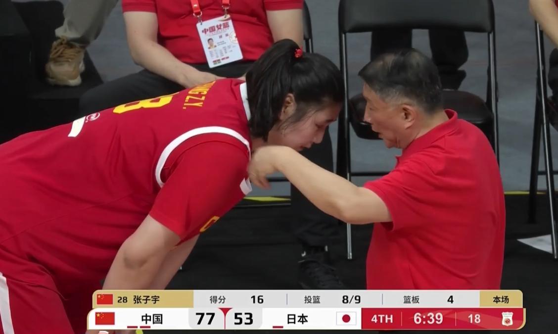 第三節張子宇幾乎沒有怎麼打,末節張子宇登場時間剛剛超過8分鐘,她已經9中8拿到16分,可宮魯鳴疑似對張子宇的防守站位不滿,宮魯鳴將張子宇換下,又在場邊單獨指導張子宇。