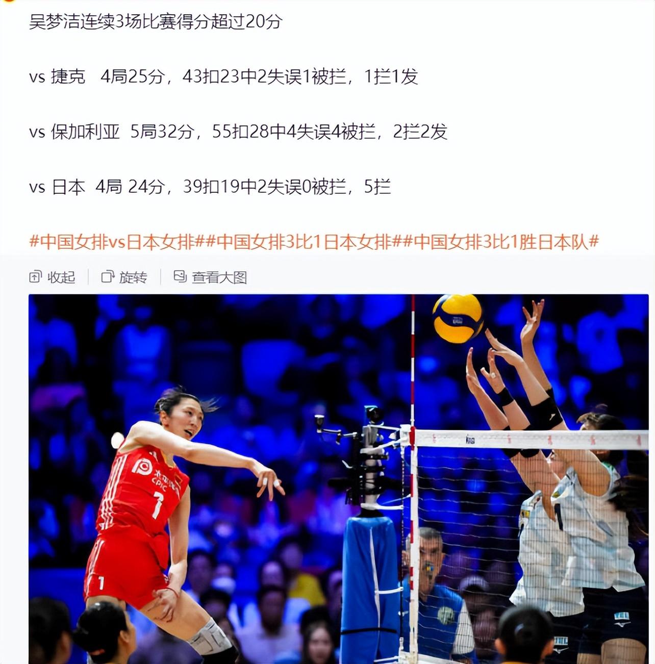 中國女排3-1擊敗日本女排豪取三連勝,在香港站中國隊感覺有如神助,尤其是對陣保加利亞與日本最後關頭,吳夢潔都完成了決勝扣球,略顯可惜的是吳夢潔在對陣日本隊完成絕殺後落地踩到了陳厚羽的腳背崴腳了。