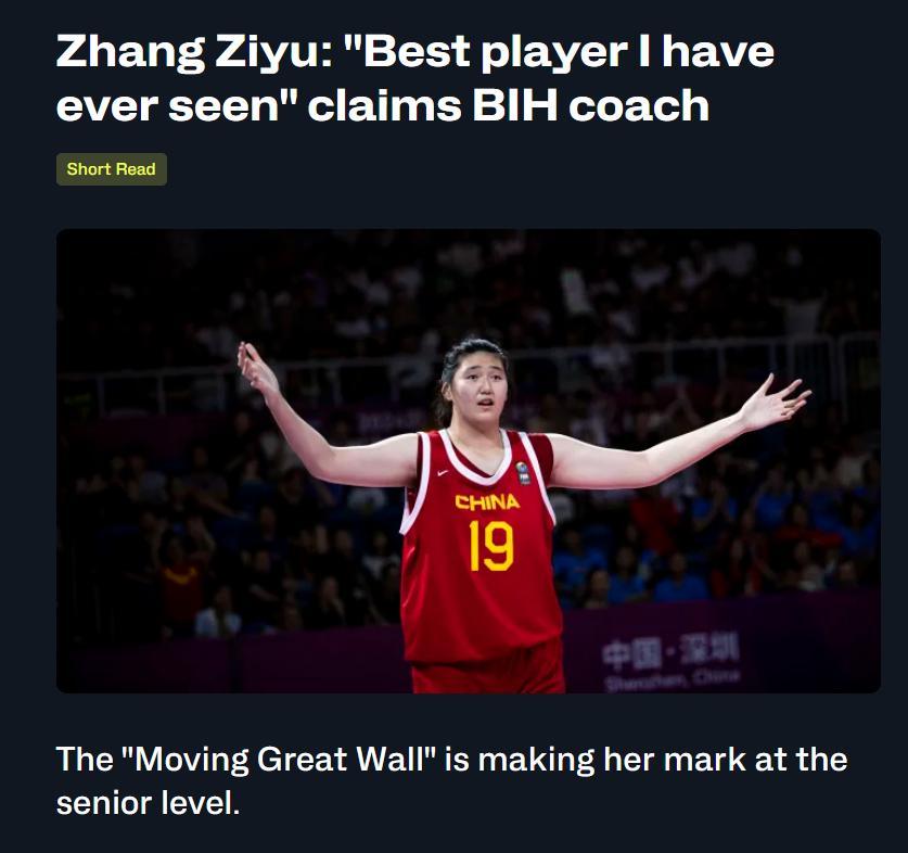 就連FIBA官方都不斷刷新着張子宇的消息,波黑主帥哈利米奇更是直言“張子宇是我見過最出色的球員”。日本女籃主帥蓋恩斯更是直言要限制張子宇很有趣,幾乎無法影響到她的出手。