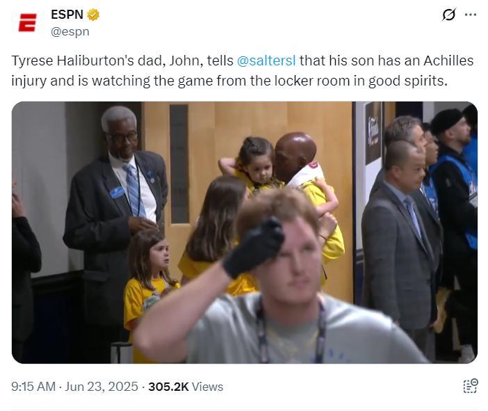 ESPN透露,哈利伯頓的父親已經確認自己的兒子遭遇的是跟腱傷勢,但嚴重程度還不得而知。