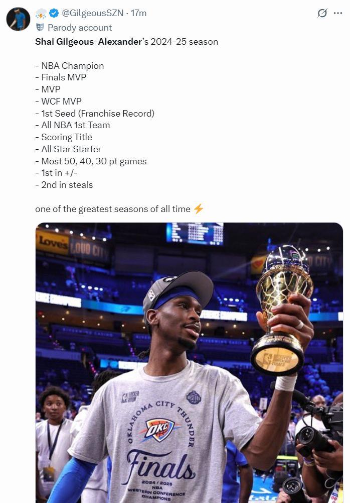 雷霆媒體曬出了亞歷山大這個賽季的功績:(評價有史以來最偉大的賽季之一)