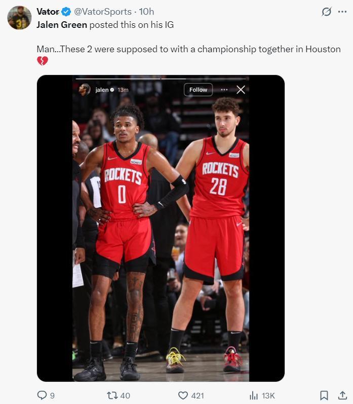 格林也在個人的IG上曬出了與多位火箭隊友的合影,他是在交易宣佈之前的一小時之前得知將被交易,但在得知交易達成前的幾周格林就知道球隊正在探索交易,他本人向管理層表態希望能長留休斯頓彌補今年季後賽的過失,只可惜球隊沒有給明確態度,最終格林也接受了他將要交易的現實。