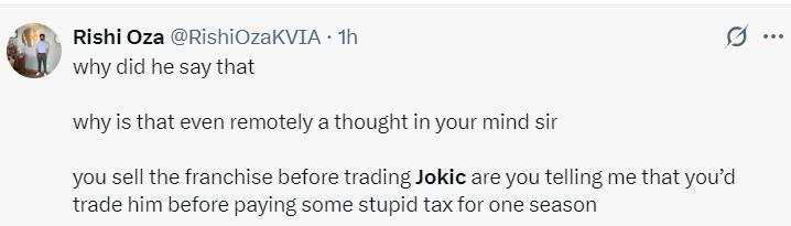 掘金球迷:克倫克爲什麼那樣說?他怎麼會有這樣的想法令人無法理解,在約基奇交易前你們賣掉球隊不好嗎?就因爲第二土豪線你們就要交易約基奇這是瘋了嗎?