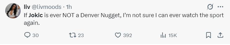 美球迷:如果約基奇不在爲掘金打球,那我肯定不會再看NBA。