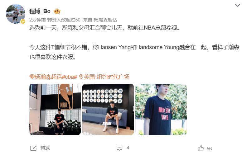 楊瀚森與父母匯合後聊了一會兒天,隨後就到NBA總部進行了參觀,小楊也在NBA總部進行了多處打卡拍照。