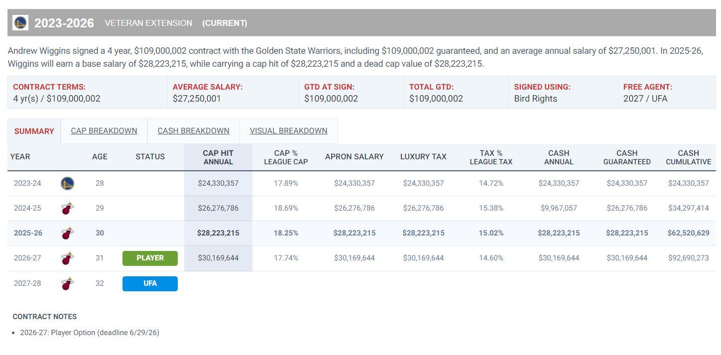 不過維金斯在上賽季被交易到熱火後他的表現並沒有太大提升,考慮到維金斯還剩兩年5800萬的合同,26-27賽季價值3016萬的球員選項這可能會對湖人造成一定的薪資壓力,湖人在追求維金斯的同時也會詢價薪金優化方案。