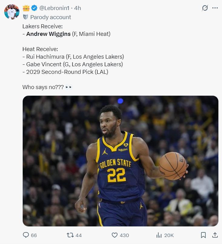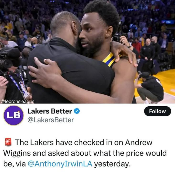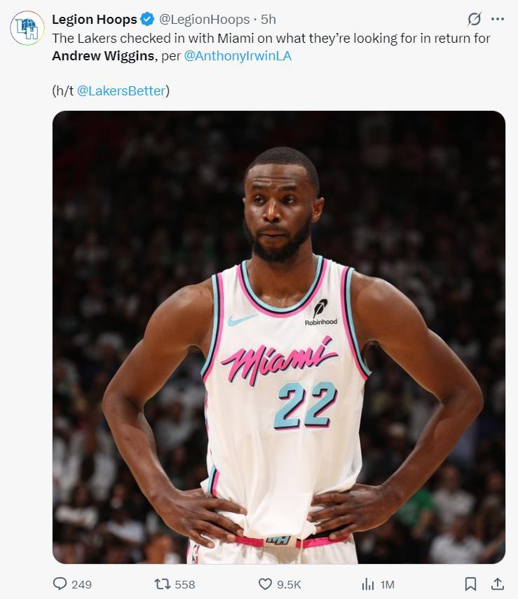 隨後湖人隊記Anthony F. Irwin更新了消息,洛杉磯湖人隊與邁阿密熱火隊進行了接洽,湖人詢價了安德魯-維金斯,湖人對這位前全明星前鋒感興趣,他們希望進一步提升陣容的深度。