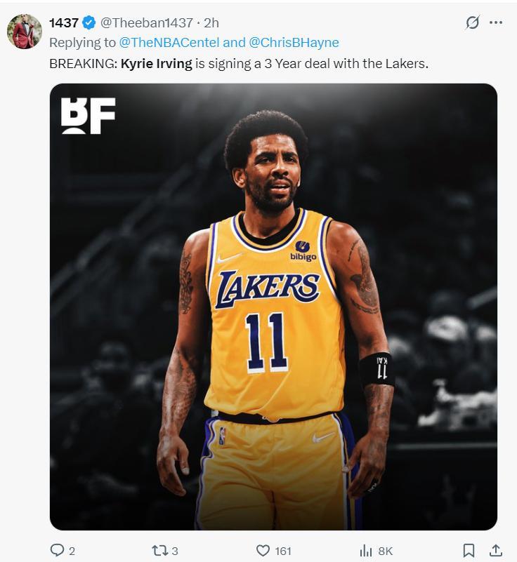 湖人媒體則希望歐文跳出合同,隨後歐文跟湖人簽約,如今湖人快船如意算盤都落空了。