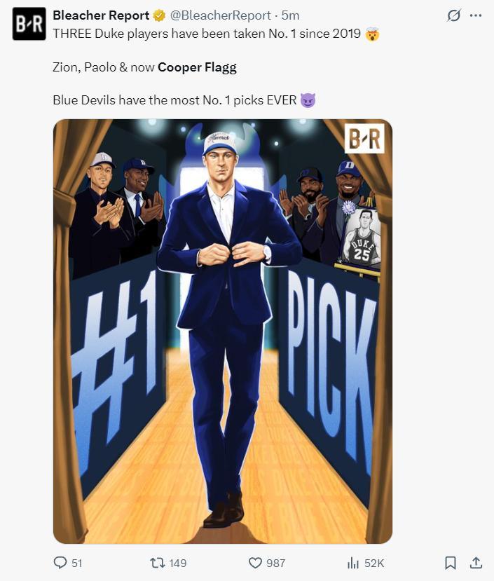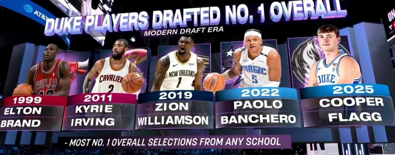 1999年是布蘭德、2011年是歐文、2012年是安東尼-戴維斯、2022年是班凱羅、2025年是弗拉格,杜克大學無愧是名校。