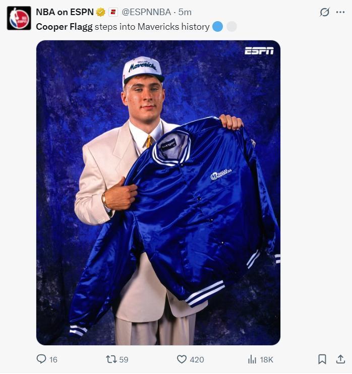 ESPN、NBA官方、體育畫報等多家媒體都製作了海報慶祝弗拉格當選NBA狀元。