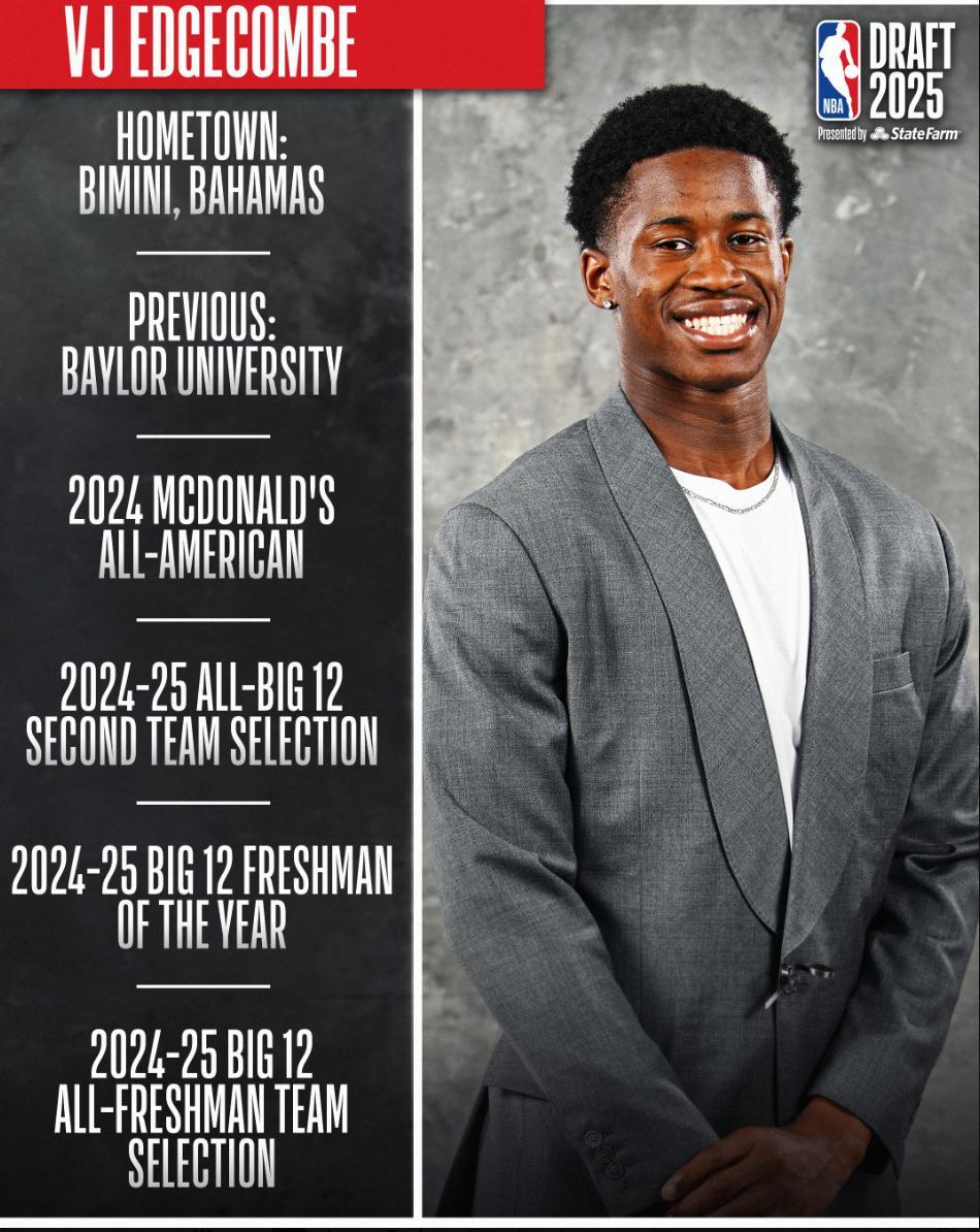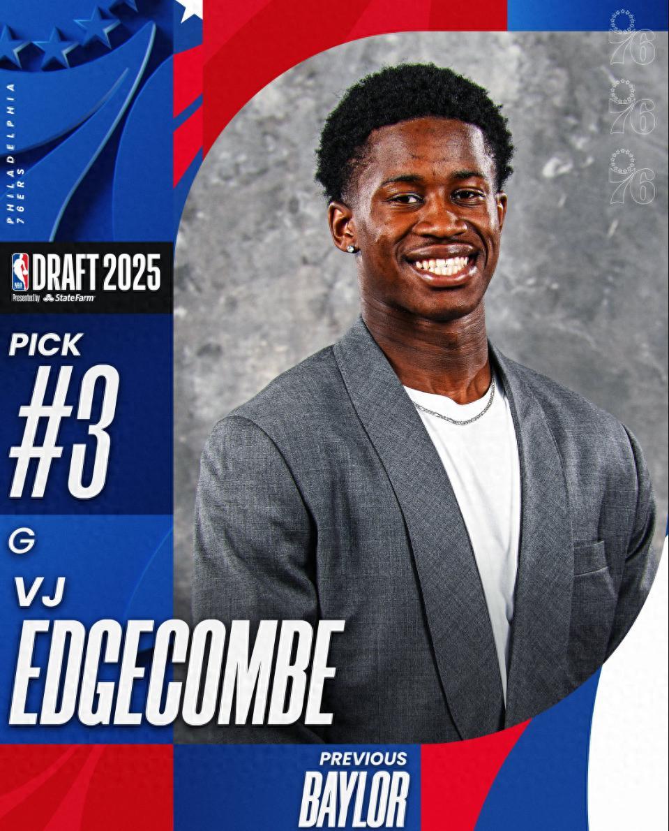 北京時間6月25日,NBA選秀大會,費城76人用探花籤選中了來自貝勒大學的後衛VJ-埃奇庫姆,這位2-3號位都能打的外線球員今年20歲,他的到來讓格蘭姆斯在費城的前景變得撲朔迷離。
