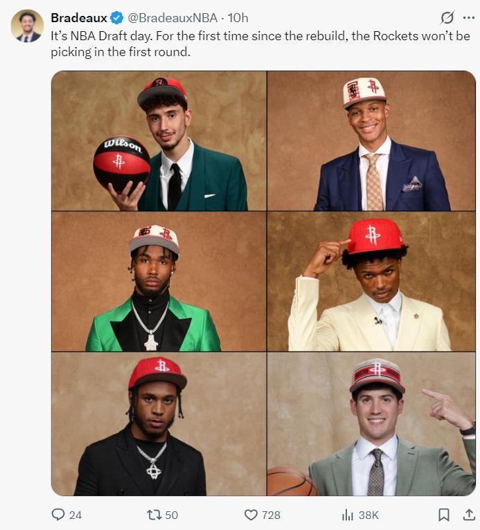 這一天也是NBA選秀的日子,這也是火箭重建以來第一次沒有選秀權的日子,這證明火箭已經不再是重建2.0版本。