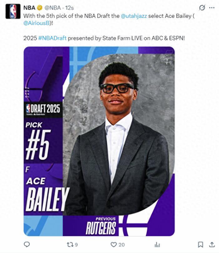 北京時間6月25日,NBA選秀大會,猶他爵士隊在選秀大會上用5號籤選中了來自羅格斯大學的艾斯-貝利。在選秀大會前貝利取消了費城的試訓,而且還通知其他的球隊他不會參與試訓,他的團隊認爲他纔是本屆最出色的新秀,而且爵士並不在他的選擇之內他想去的是籃網、奇才,結果爵士硬選他。