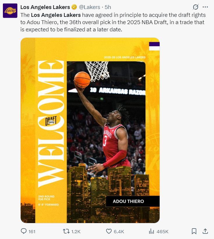 湖人36順位選中蒂耶羅A,雖然湖人被黃蜂打劫了,不過選中裸足1.99米的防守悍將蒂耶羅評級還是到達了A,他最大的軟肋是投射,上賽季三分命中率只有25%。