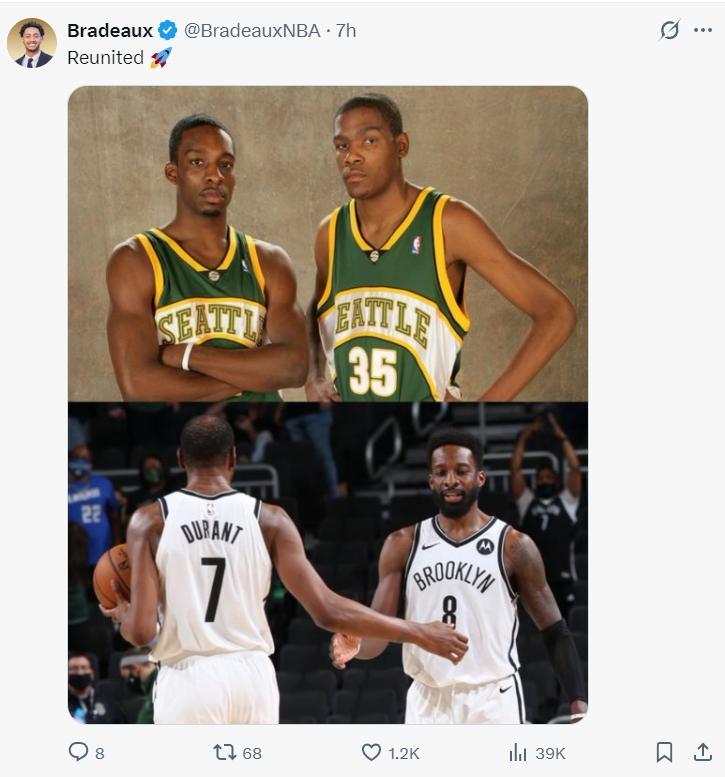 傑夫-格林與球隊續約後,他已經是生涯第三次與凱文-杜蘭特聚首了,第一次是在超音速,第二次是在籃網,沒想到兩人都在生涯暮年匯聚休斯頓。