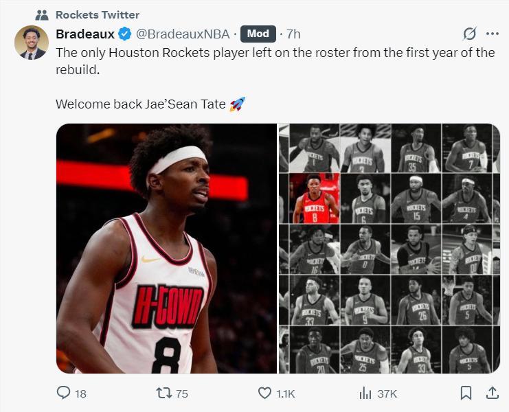 火箭續約泰特的話,泰特將是塞拉斯重建時代的唯一球員,他見證了這支火箭隊的大起大落,續約泰特也是爲了彌補鋒線上的輪換,畢竟白魔已經上貨架了。