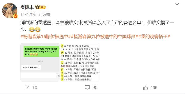 森林狼原本17號籤的人選應該是楊瀚森,結果楊瀚森在16號籤被開拓者截胡了,森林狼選秀辦公室是一片沉默。