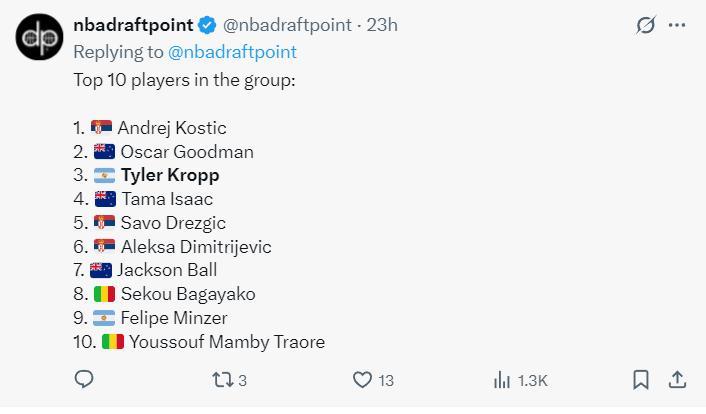 這一屆U19男籃除了美國之外的前十超巨,塞爾維亞的科斯蒂奇、澳大利亞的古德曼前二,排在第三的就是阿根廷的克洛普,克洛普作爲一名超過6尺8的鋒線技術十分全面。