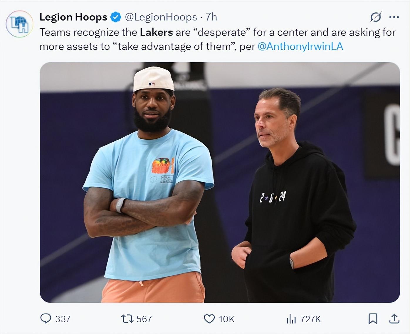 根據湖人記者安東尼-勞瑞恩的報道,湖人一早就知道引進中鋒的重要性,結果現實目標是一個37歲的布魯克-洛佩斯?在陣容絲毫沒有升級,佩林卡按兵不動的情況下,詹姆斯對這個前景感到失望不是合理的嗎?他執行球員選項是知道湖人的主旋律還是“省錢”,新老闆到來並沒有改變什麼。