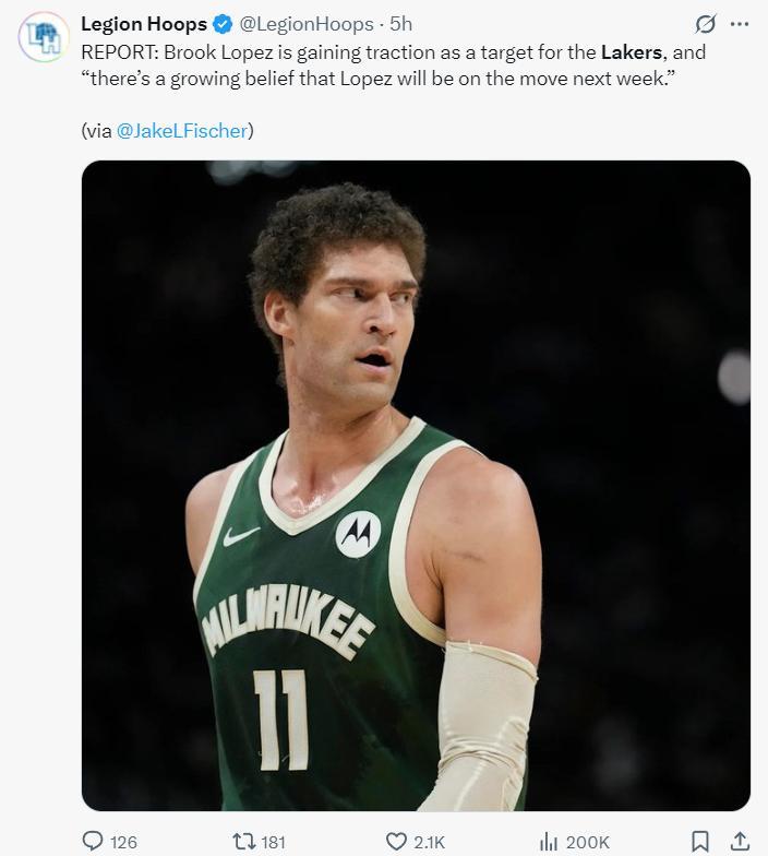 但BR記者傑克-費舍爾卻透露,雖然湖人有意用570萬的奢侈稅中產特例簽下卡佩拉,可過去幾周卡佩拉的名字並沒有與湖人緊密相連,越來越的人開始相信,下週的某一時間37歲的布魯克-洛佩斯就會加盟洛杉磯湖人隊。