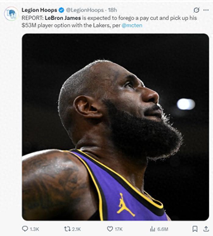北京時間6月28日晚,根據馬克-斯坦恩的消息,勒布朗-詹姆斯決定執行他下賽季價值5262萬的球員選項。全世界的球迷都對這個選擇感到詫異,爲什麼詹姆斯不跳出合同繼續降薪續約1+1呢?這樣湖人有更多的引援空間啊?