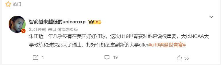 開場歐洲籃球專家王健就表示:朱正近一年幾乎沒有在美國好好打過球,這次U19世青賽對他來說非常重要,大批的NCAA大學教練/球團都來了瑞士,他打得好有機會拿到新的大學offer。