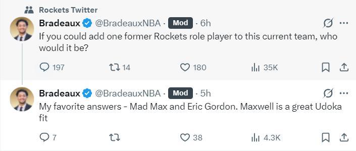 休媒Bradeaux直接寫道:如果你們要問我重新簽下一位前火箭球員的話,我會選擇埃裏克-戈登。(這裏就說明他不希望小凱文波特迴歸)