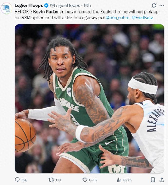北京時間6月29日,根據雄鹿記者Eric Nehm和Fred Katz聯合報道,小凱文-波特拒絕執行他下賽季250萬的球員選項,他將成爲完全自由球員。小波特季後賽場均30分鐘拿到11.2分3.6籃板5.4助攻,他在交易截止日被交易到雄鹿後發揮很不錯。