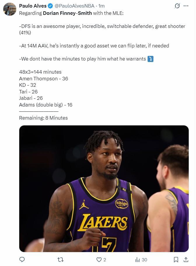 火箭記者Paulo Alves寫道:關於火箭MLE引進史密斯,他的確是一位優質的3D球員,能防守多個位置,但火箭隊鋒線位置上人太多,他如果與球隊不適配的話我們沒有必要長期手握他,他如果是多年的全額中產會極具交易價值,我們可以日後再轉手交易他。