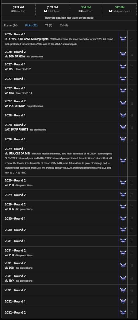 2026年-2032年這七年之間黃蜂隊還有10個首輪籤與12個次輪籤,換言之這支球隊很有可能在未來五年內崛起。