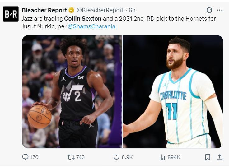 北京時間6月30日,黃蜂與爵士還達成一筆交易,黃蜂將努爾基奇送到猶他換來塞克斯頓+1個2031年的次輪籤,誰能想到弩機可以換到塞克斯頓+1個次輪籤?