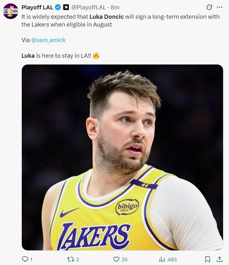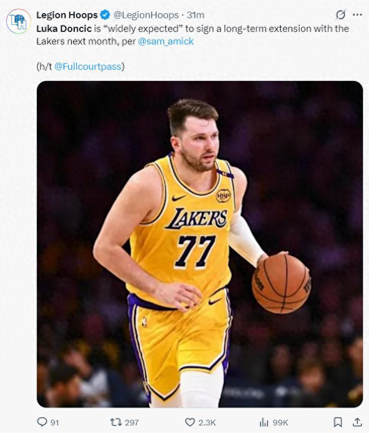 北京時間6月30日,TA記者薩姆-阿米克報道,聯盟內部人士普遍認爲,盧卡-東契奇將在八月份與湖人簽下一份長期的續約合同。