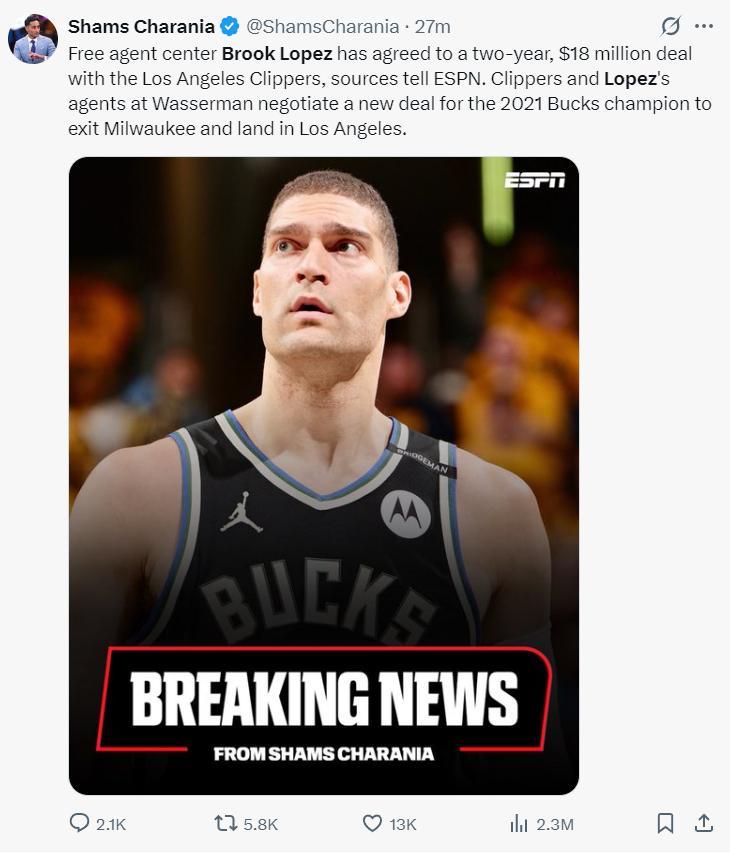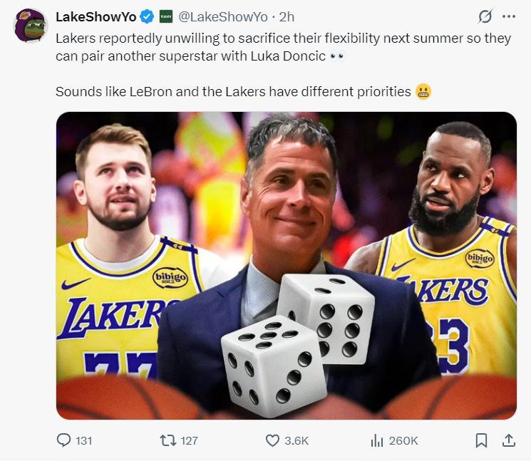 湖媒 :湖人又再一次錯失了他們的引援目標,哭臉。