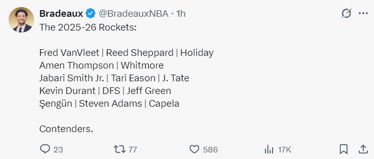休媒還表示火箭隊下賽季可以打14人輪換——