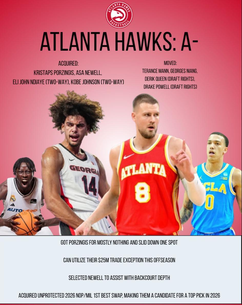 老鷹自由市場簽約日得到沃克+肯納德,選秀日得到23好號秀紐厄爾,交易得到波爾津吉斯。