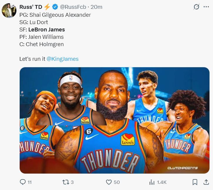 雷霆媒體RUSSTD也招募詹姆斯明夏簽約OKC,在雷霆打先發的三號位。