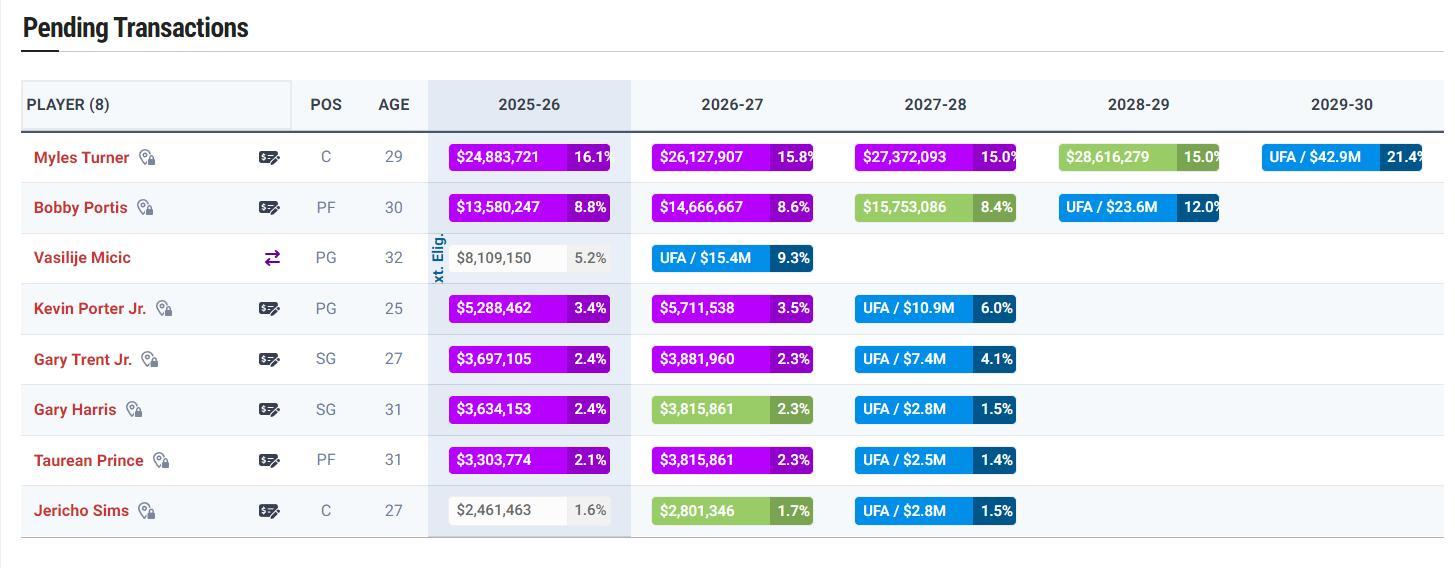 雄鹿隊這9筆運作等於是引進8人,這8人下賽季的薪水:特納2488萬、波蒂斯1358萬、米西奇810萬、小波特528萬、特倫特369萬、哈里斯363萬、普林斯330萬、希姆斯246萬,這8人合計才6492萬美元。