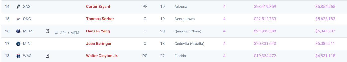 根據NBA的規定首輪新秀的合同基本上都是額定的,今年16號秀是四年2139萬美元,但也要看球隊與經紀公司的談判,這個薪資並不準確,可能有些許誤差。