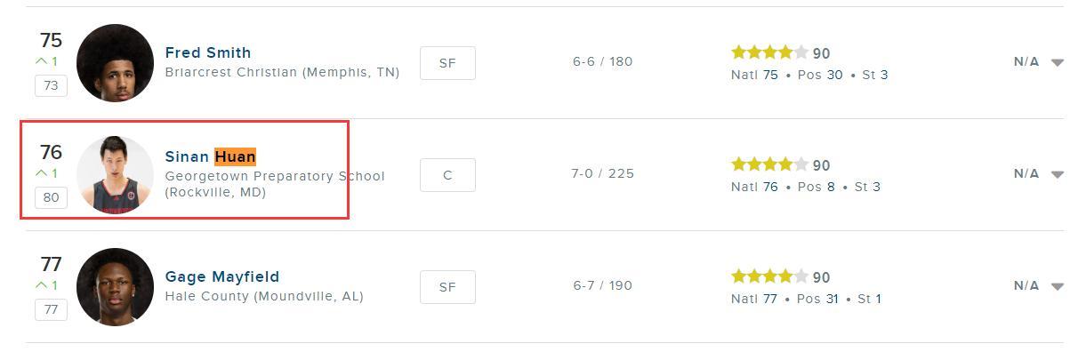 郇斯楠即將進入NCAA打拼,他在2027屆中的排名是全美第76位,他因爲世界盃的出色表現還提升了一個名次。