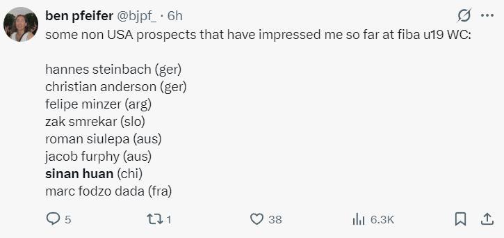 郇斯楠這位2007年出生的小將已經受到了多位美國球探的關注。