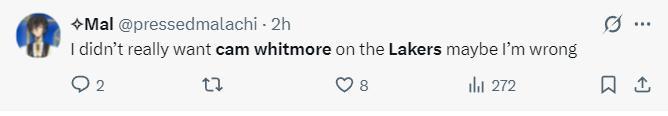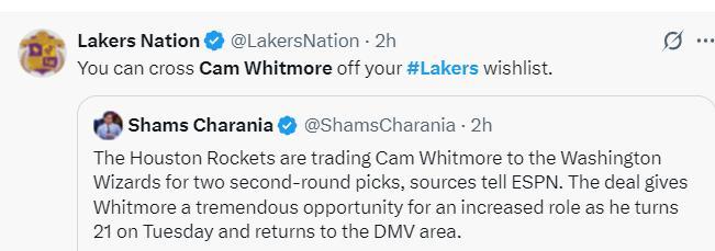 湖蜜:關於惠特莫爾加盟湖人的流言就此終結了。