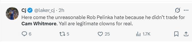 湖媒:瞧,那些人開始對佩林卡發飆了,他們認爲湖人沒能換來惠特莫爾是失敗,這些傢伙太愚昧了。