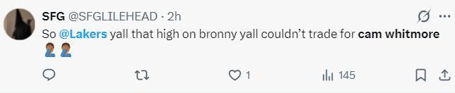 湖人球迷:湖人對布朗尼太過於狂熱?以至於你們都不願意去換白魔了。