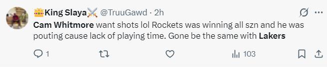 湖人球迷:白魔調侃的說“火箭正在賽季都在贏球白魔在那裏打不上球,他來到湖人也會是同樣的情況”