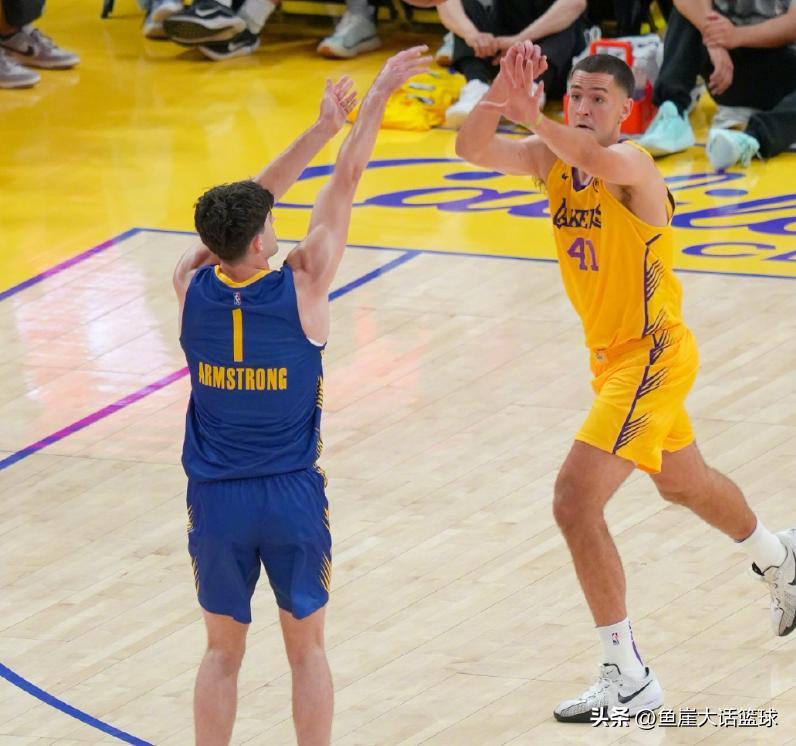 第一節比賽湖人打出一波9-2,後面阿姆斯特朗命中三分,接下來兩隊進攻頻頻打鐵,克內克特空位三分也打鐵,之後圖希終於上籃得分,辛森罰球3中2後貝茲利罰球2中2,羅突破上籃得分後泰勒命中三分,湖人領先7分。暫停後萊斯命中三分,末尾階段馬儂罰球得分,第一節比賽結束勇士落後8分。第二節比賽克內克特上籃得分,霍金斯命中三分後沙克爾福德命中壓哨三分,戴維斯拋投得分后辛森快攻上籃得分,斯圖爾特命中三分後克賴爾罰球2中2,斯圖爾特罰球3中3克賴爾命中三分,戈登上籃得分後莫布里上籃也命中,隨後湖人一波5-2領先到10分。末尾階段勇士多點開花縮小比分,半場比賽結束湖人領先4分。