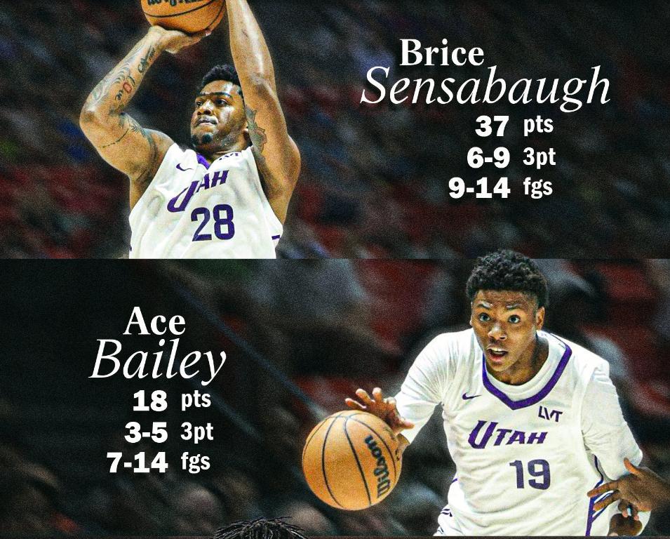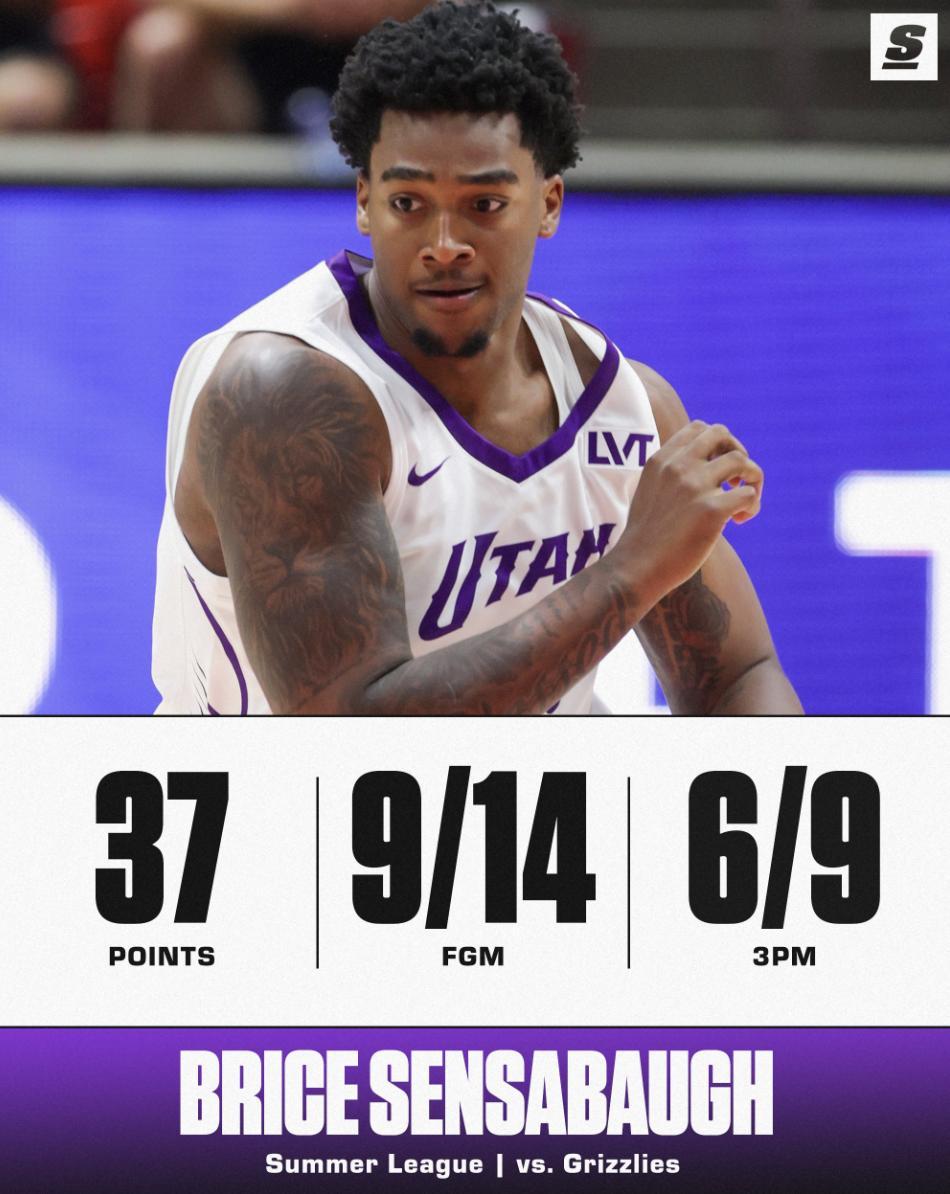 替補席的克萊頓是2025年首輪18順位,這些年輕的超星選秀順位都比森薩博高,森薩博是2023年首輪28號秀,此役他全場比賽27分鐘,14中9,三分9中6,罰球14中13,拿到37分4籃板1助攻2搶斷,命中率64.3%,三分命中率66.7%。他打破爵士隊個人夏季聯賽得分紀錄。