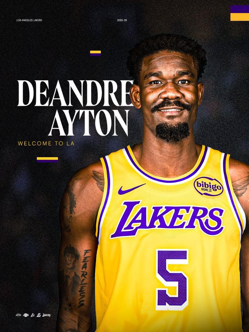 艾頓與湖人簽下的是兩年1660萬的合同,26-27賽季是球員選項,他選擇的是湖人5號球衣,上一位選5號的是雷迪什,除此之外比斯利、霍頓塔克也選擇過五號。